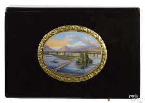 1/22/2018 – My pick for this week lot #308. Shockingly, it is not a piece of Americana, not a piece of stoneware, and not even a great folk art treasure. Lot 308 is very far away from any of my usual likes. This one is a Patek Phillipe signing bird box. While much more of a recognizable name in watches, Patek Phillipe produced these gems in the mid 19th century. Just like their watches these are true works of art. From the enameled lid mounted in gold on top of the tortoise shell case, to the feathery little friend who serenades you when open the lid. These were made by the hands of true master craftsman. What a great opportunity to buy an example of work which was way ahead of its time by one of the most renown and respected Swiss watch makers.