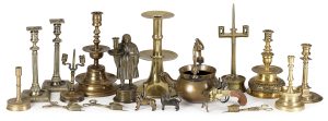 Mr. Lear’s focus is on copper alloy candlesticks, which are primarily brass, composed of copper and zinc, plus whatever elements existed in the local materials. Due to varying geographic components and metallurgical imperfections, the nuances of color among the candlesticks in the collection range from pinkish to yellow to silver hues. Every piece has been tested, analyzed, and researched.