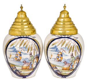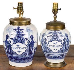 Throughout the 17th and 18th centuries, Delftware was the most common type of ceramic export to the American colonies, the wide range of products doing everything from adorning elegant tables and displaying flowers to serving utilitarian purposes in apothecary shops and beneath beds (Antiques and the Arts Weekly, Delftware at Historic Deerfield, 1600-1800). By the close of the 17th century, England controlled American colonial trade, but it was the Dutch who dominated global trade, and continued trading in the Americas long after their colonial presence. When England’s 1642 Civil War disrupted supply lines, colonists pivoted to Dutch and French traders. The desire to eliminate Dutch competition gave rise in 1651 to Britain’s Navigation Acts, mercantilist policies designed to protect colonial markets and trade routes. Only British ships were allowed to carry goods to the American colonies, cutting off trade with foreign powers. However, archaeological and archival evidence indicate that Dutch ceramics were common, if contraband. “A minute of the English Privy Council of 1662, concerning the ‘secret trade with the Dutch,’ charges that the plantations were ‘delivering tobacco at sea… carrying the same to New England… and thence shipping it in Dutch bottoms,’ and were committing other illegal practices contrary to the Navigation Acts,” (Charlotte Wilcoxen, Dutch Trade with New England). Colonial governors continued to allow Dutch, Spanish, and Venetian ships to trade in their ports, circumventing British trade policy- particularly with the Dutch. Dutch traders could provide a wide variety of goods needed by the colonists at lower prices. The Dutch were also the largest market for tobacco, colonial America’s most important cash crop. Once in Holland, the imported tobacco was stored in warehouses in Delftware jars designating origin and type, such as rappé for snuff.