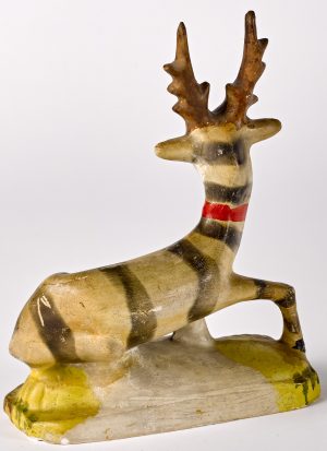 A pick of the week two weeks in a row? It very well might start snowing here in May. Pook and Pook Auction has a problem in that we are filled to the brim with great Americana. The shelves are full, the carts are full and there is not an open square inch of floor space to be found. This might be a problem for some but for me, I am like a kid in a candy store. If I had all the time in the world my pick of the week could easily be a pick of the day. I have so much to choose from. The May 21st Americana and International sale offered up over 565 lots for me to pick from. As many of you know I am drawn to the Pennsylvania Germanic arts. I love the late 18th, early 19th century painted surfaces, the folk-art forms, and utilitarian objects that were so prevalent in the central Pennsylvania towns and backroads. A second subject I am passionate about is animals, sharing my outdoor adventures with my dog Stella, we are quick to escape to the woods for respite. Wandering through the forests we routinely stop to enjoy the scenery and the mountain animal life that can be overlooked by others. So, combining those two joys as I am paging through the catalog, I know I have certainly found a favorite. This week I am going with lot 401, a 19th century painted chalkware stag. This guy is adorned with a bold yellow base, a striped body with red highlights. So, he checks off both boxes. An animal from the forest of Pennsylvania’s woods and a great Pennsylvania Dutch piece of chalkware with great form and great color. What inspires your collecting?