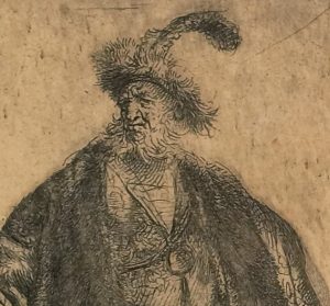 Engraving- To create an engraving, an artist removes his or her desired image from a plate using a handheld tool called a “burin.” The Spencer Museum of Art described the process as similar to apple paring because the ground, often copper, is scrapped away in small spirals. One can identify engraving because of its distinctive lines. Lines start at a point, grow and then taper at the conclusion of the artist’s stroke. Though etching and engraving are very similar in appearance, remember, etching lines are uniform. Triangular flicks or stabs, characteristic of a burin stroke, are also indicative.