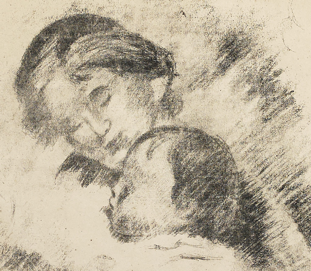 Mezzotint- Mezzotints differ from other intaglio techniques in that the artist works from dark to light. He or she uses a multi-pointed tool called a “rocker” to score the entire plate surface. If it were inked in this stage, the print would come out entirely black. Lighter variations appear through selectively scraping and burnishing the plate to smooth it out, allowing less ink to collect in the grooves. This polishing effect gives mezzotints a smooth, hazy tone and occasionally allows the rows of uniform tiny dots created by the rocker to show through.