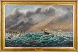 His children Xanthus and Mary became successful artists in their own right. Both attended the Philadelphia Academy of the Fine Arts. Xanthus became particularly famous, utilizing his wartime service in the Navy to specialize in historically accurate paintings of Civil War marine battle scenes. Lots 38 and 39 are both by Xanthus, bringing the total number of paintings in the May 21st sale by the Smith Family of Painters to five.